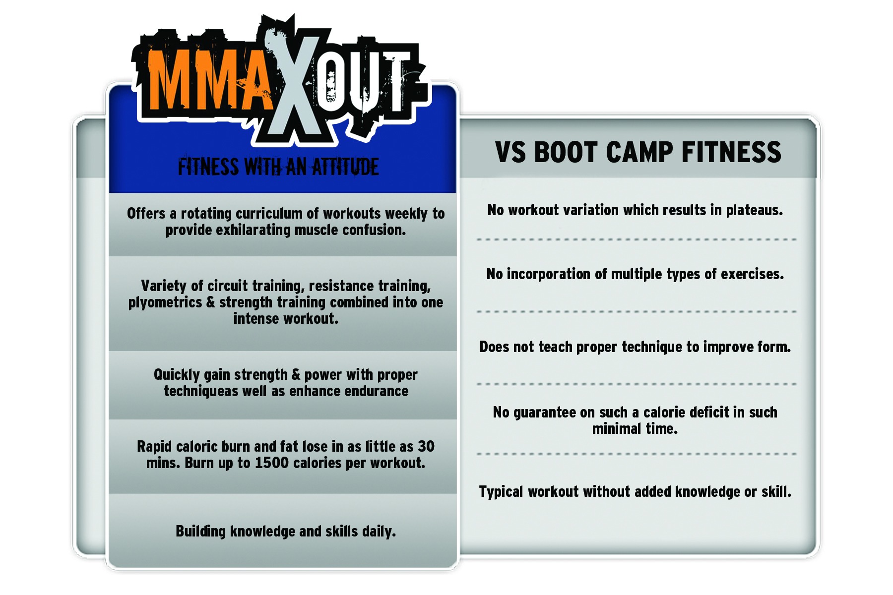 Where can you get the most intense, fat-burning workout in as little as 30 minutes? Mmaxout’s functional fitness high intensity workouts guarantee you the most effective results possible in just 30 minutes. Exceedingly 100% more successful than going to a franchise gym and strictly doing your typical cardio and weight routine. The best thing about our 30 minute workout is it will not only be the most effective but it will be the most intense as well.